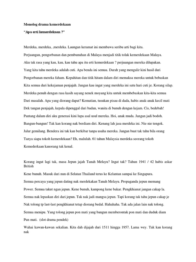 CAMBANGNYA MAU DI KEROK. Cukup hanya dilakukan sendiri pun bisa. Berdasarkan pengertian umumnya arti monolog adalah.